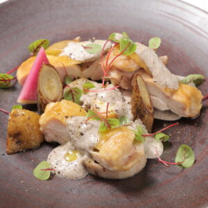 広島熟成鶏のロースト、トリュフ風味のクリームソース