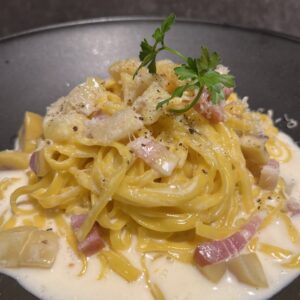 ローズマリー香る 栗とベーコンのクリームソース、かぼちゃのタリオリーニ